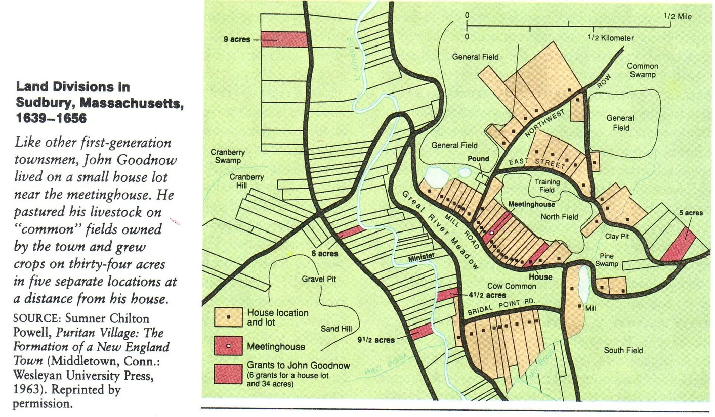 E. Distance and Britain's initially lax attention led to the colonies creating self-governing institutions that were unusually democratic for the era. The New England colonies based power in participatory town meetings, which in turn elected members to their colonial legislatures; in the southern colonies, elite planters exercised local political authority and also dominated the elected assemblies.