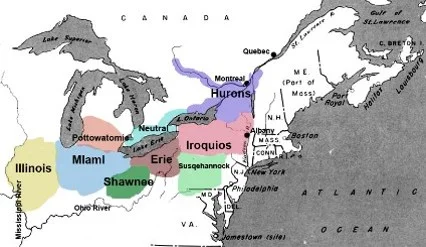 From 1634 to 1640 the Huron Confederacy was decimated by diseases such as smallpox and measles, to which they had no immunity => this led to the dispersal of the Huron, as they no longer had the strength to fight to maintain their position in fur rich lands